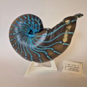 - Other specifics: well preserved fossil with rare celadon green mineralisation of outer shell